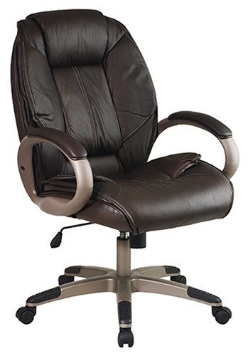Office Star Work Smart Executive Glove Soft Leather Chair with Coated Finish Base and Arms, Espresso Rating ,