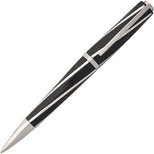 The Visconti Black Divina Ballpoint Pen is easily one of the most beautiful ballpoints on the market. Released in late 2008, it has been a hit ever since. It is crafted from lucite and given a symmetrical five-sided twist with sterling silver inlays. The Visconti Black Divina ballpoint pen operates with a simple twist-action and employs Parker-style refills.